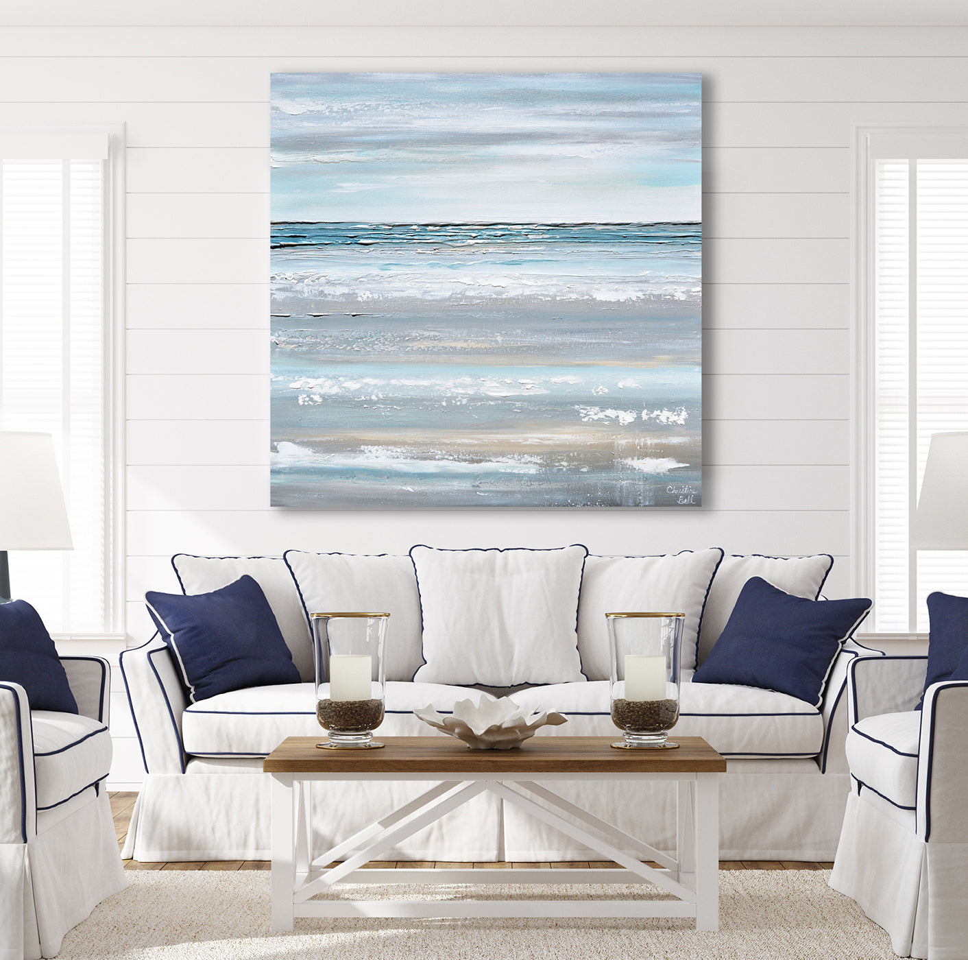 Internationally Collected Artist, Christine Bell Krainock is known for creating unique, vibrant, textured, coastal abstract, oil paintings which evoke feelings of nostalgia and serenity. Her paintings, and fine art giclée prints, with their beautiful color, composition and mood, tell a story on the canvas. Christine's original paintings are always in high demand by top Interior Designers and homeowners, and can be found in private and public collections around the world.