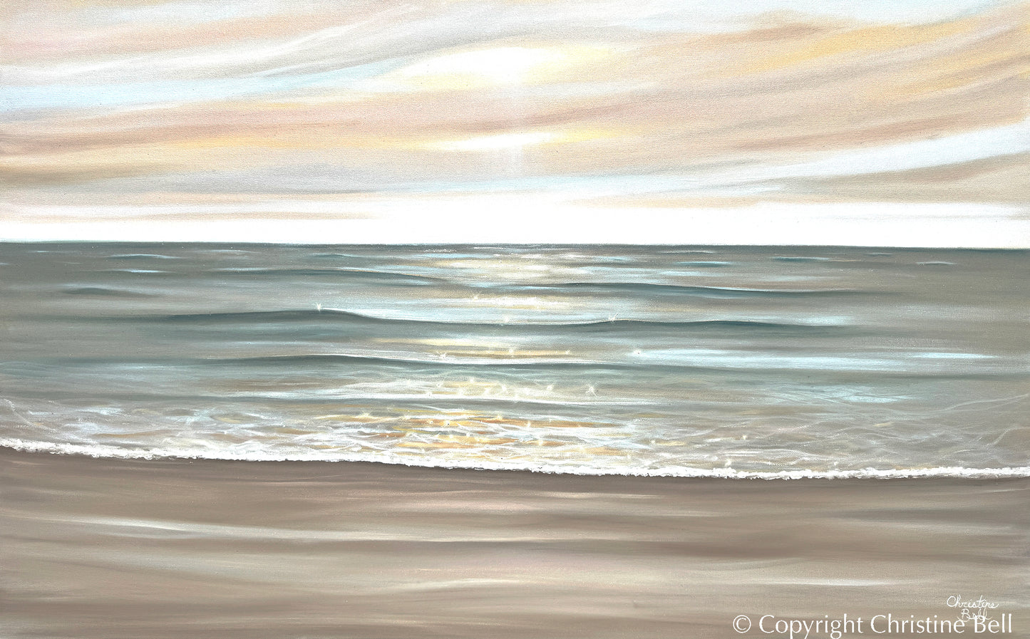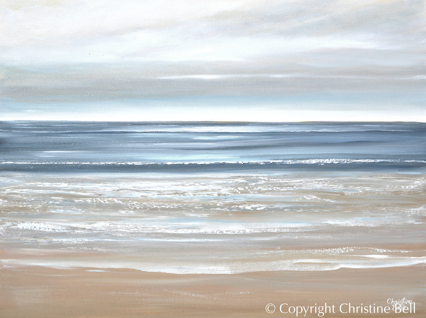 There is nothing like the look and feel of an Original Painting. To see the actual palette knife and brush strokes, the blending of colors, the smallest marks and details added by the Artist to create the perfect balance. Hand-painted, Original, Fine Art Paintings by Christine Bell contain beautiful textures and hues depicting idyllic coastal shorelines, pristine waters and airy impressions of the surrounding landscape in an elegant and timeless style. Whether a large scale painting to be the focal point of a room, or a small, beautifully framed painting for those small spaces and table tops, when you purchase and collect Original Paintings by Christine, each meticulously created with love, you are investing in a piece of artwork that is not only beautiful and timeless, but also is a product of decades of work acquiring and developing her unique skill and talent. Each painting contains a bit of the Artist's heart and soul. Enjoy exploring and adding a timeless, Original Painting to your Art Collection! If you care to discuss a Custom Painting please message via chat and Christine, herself, will reply ASAP.