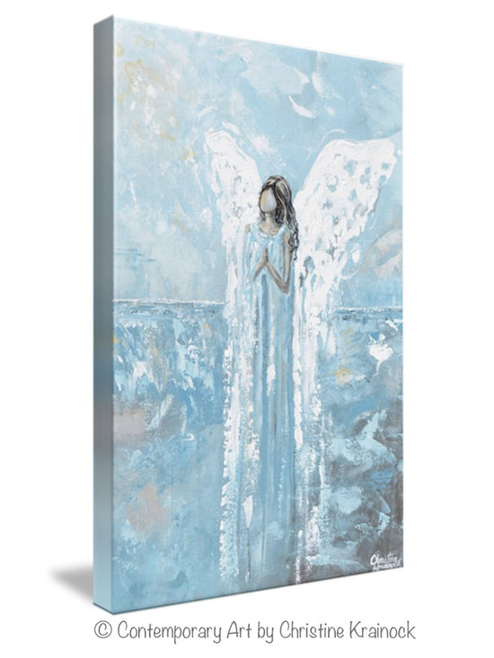 GICLEE PRINT Abstract Angel Painting Blue White Guardian Angel Home Decor Wall Art