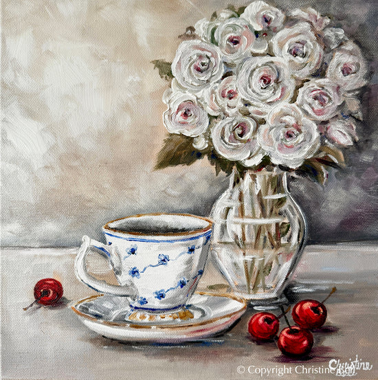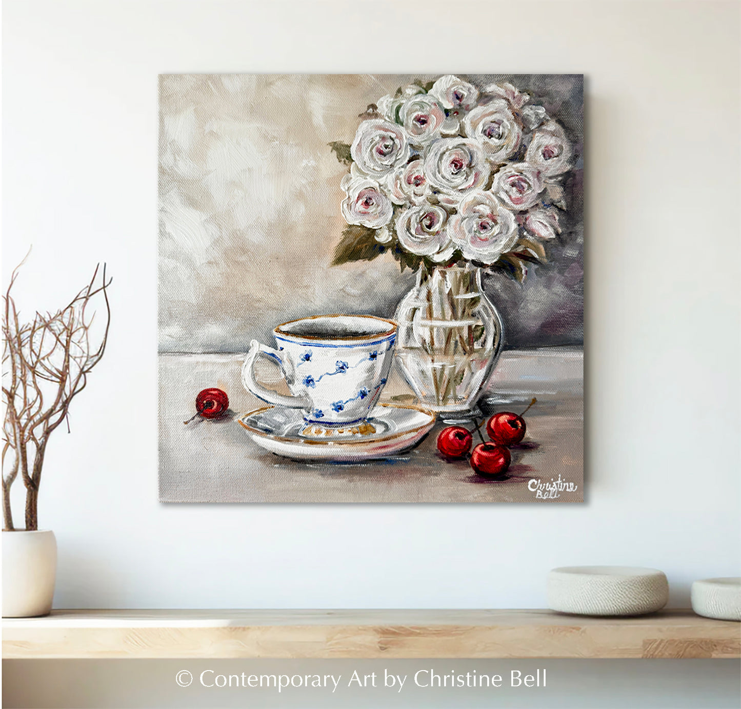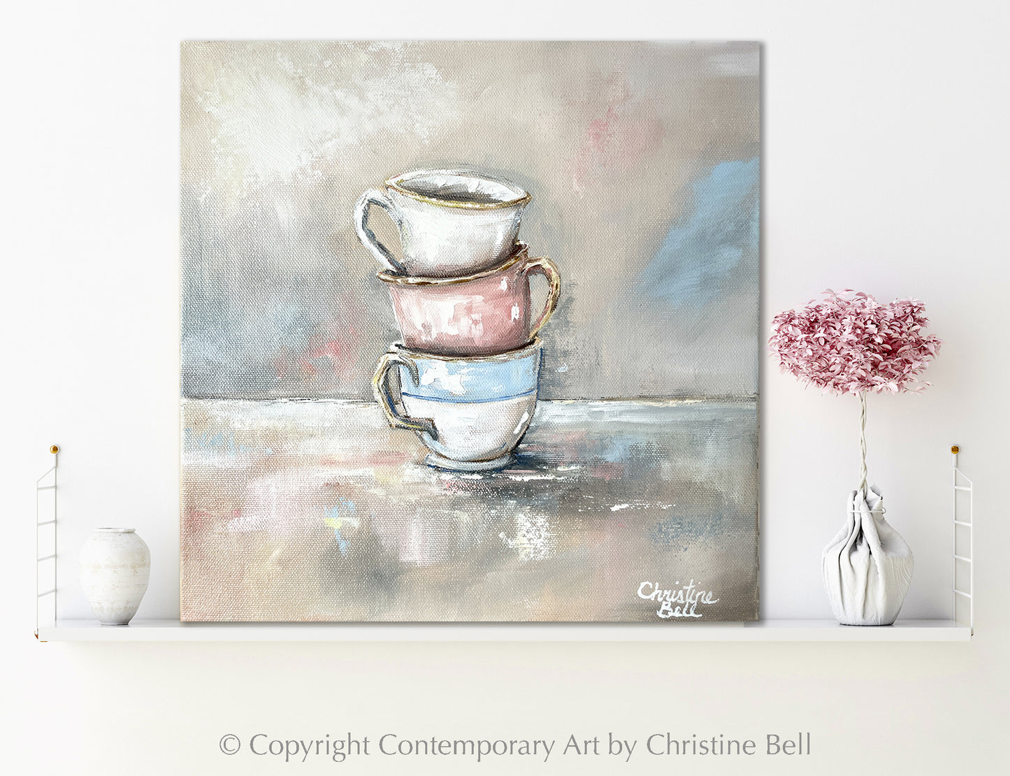A sweet touch of whimsy is apparent in this little series of modern, impressionistic teacup paintings. A reminder that beauty is found in small everyday things and when surrounded by the everyday hustle and bustle to take a moment for yourself: sit back, breathe, and relax with a favorite cup of tea.