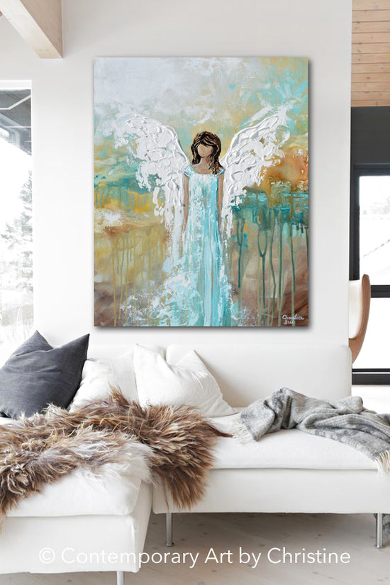 "Angel of Hope" GICLEE PRINT Abstract Angel Painting Guardian Angel Aqua Blue Turquoise White