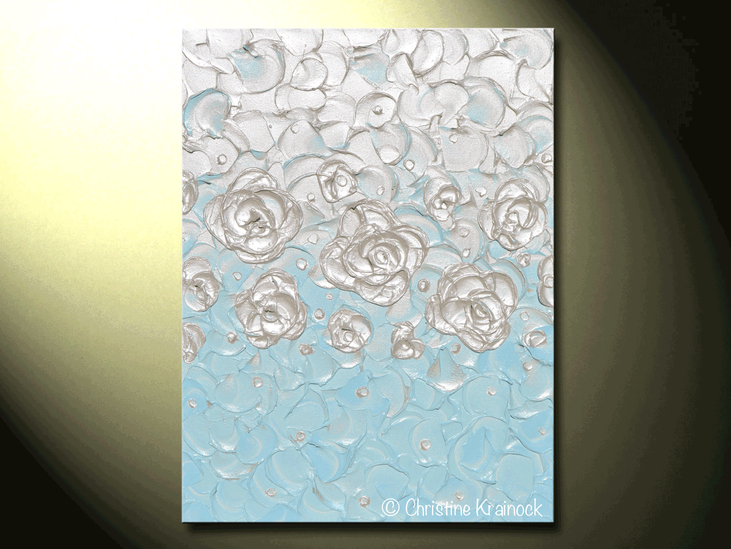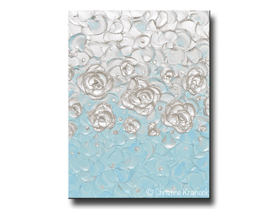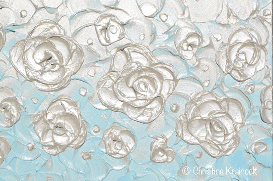 "Winter's Ice" CUSTOM, Made-to-Order, Original Abstract White Painting Pearl Pale Ice Blue Sculpted Contemporary Art Palette Knife Art textured white wall art decor gift mixed media acrylic. Beautiful iridescent effect. Gallery wrapped canvas. Can be hung vertically or horizontally.- Hand-painted, one-of-a-kind. Beautiful, vibrant, wonderful texture! The sides of the canvas are painted pearl white so your new painting is ready to hang! The visual quality of this textured, painting is stunning in both indoor, and natural light. Each painting purchased comes with a signed and dated Certificate of Authenticity verifying that this is an original piece of art created by internationally collected artist, Christine Krainock.