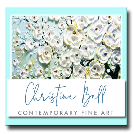 Original Paintings: An Original Painting is a one-of-a-kind, unique piece of artwork to be collected and treasured for generations. Each Original Painting is hand-painted in oil, and/or a combination of mixed media painting materials and contain brushstrokes and/or palette knife texture which may be visible from the paint is applied. The surface common to Christine's Paintings is 100% cotton, 1.5" deep, archival gallery-wrapped, stretched canvas, unless otherwise noted. Other surfaces might include; 100% Copper panel, Fine Belgian Linen panel or archival fine art paper.