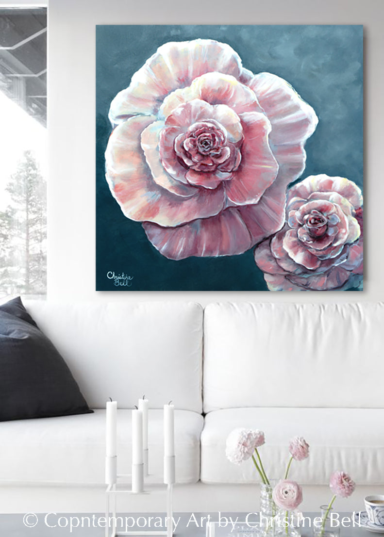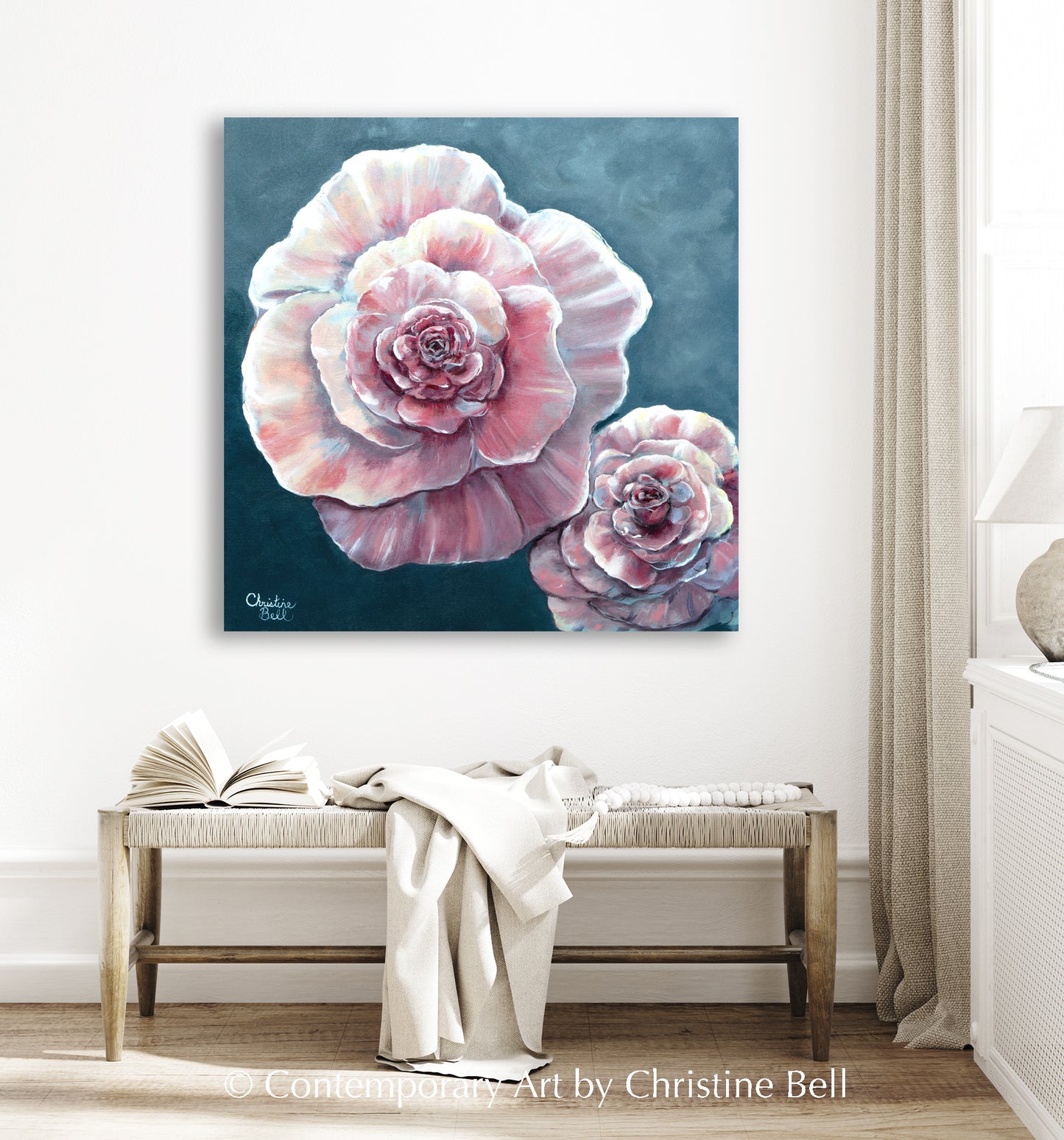 • "Every morning when I open my eyes, this painting is the first thing I see. It is positively GORGEOUS. I own two Christine Bell works of art -- an angel giclee and this original. They are stunning! "Full Bloom" is exquisite in its color palette and attention to detail. I wish you could see the way it picks up the light during different times of day. I truly can't say enough about Christine's talent or spirit. She is a DELIGHT to work with and her art reflects the hope and love she radiates. The original was delivered on time and in perfect condition. On her suggestion, I chose a floating frame which really makes it "pop," however, it really doesn't need a frame at all. I get so many compliments on it, but most of all I derive a sense of peace from it every time I walk by. Thank you, Christine!!!!!! I'll be back for more...xo"