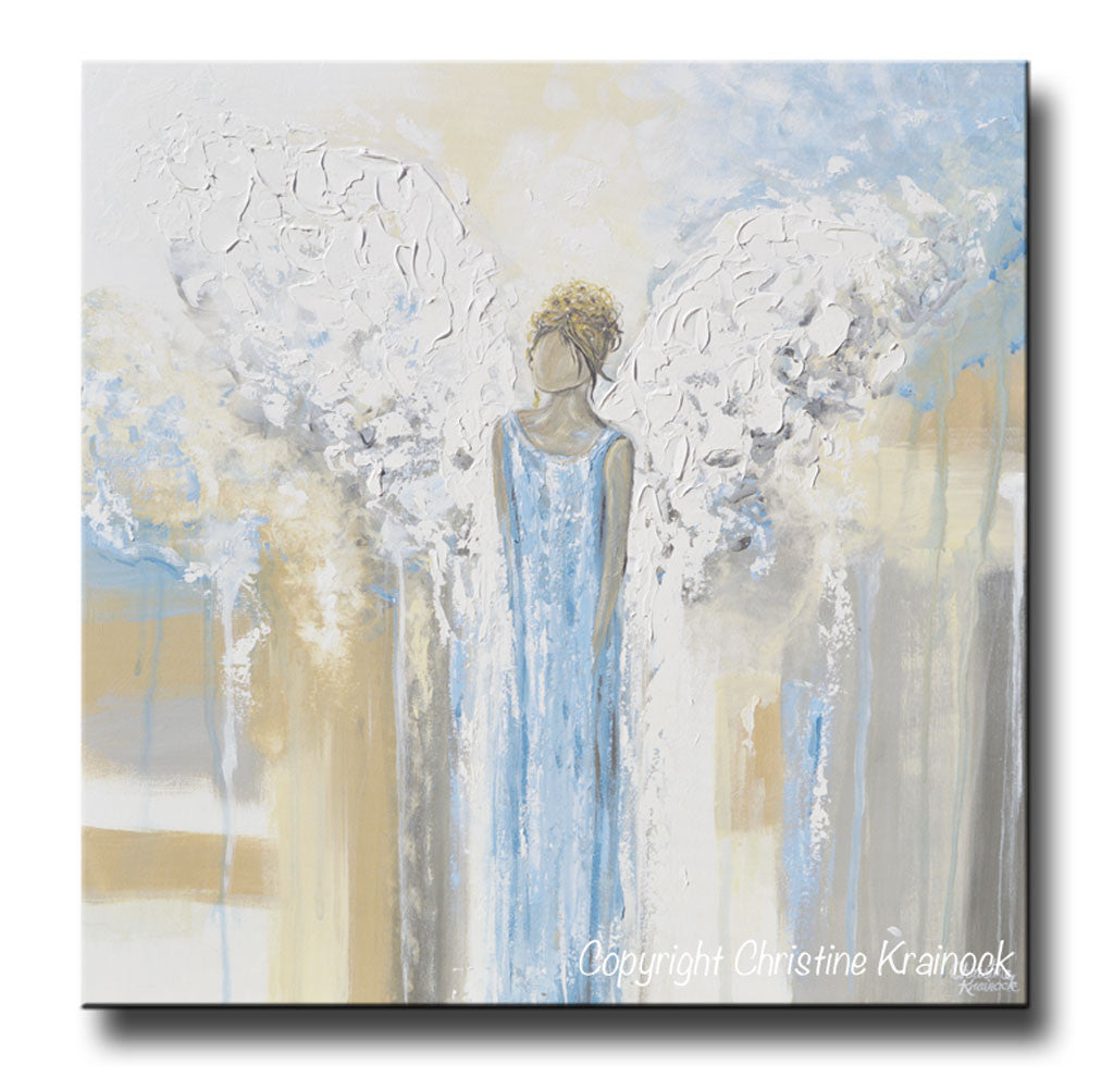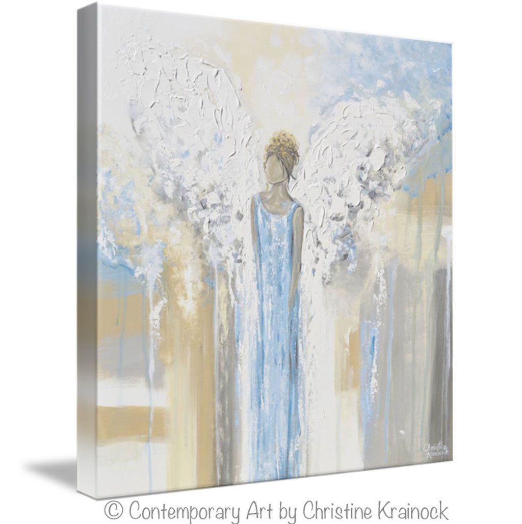 GICLEE PRINT Abstract Angel Painting Guardian Angel Fine Art Angel Wings Blue White Grey Gold Home Decor Wall Art