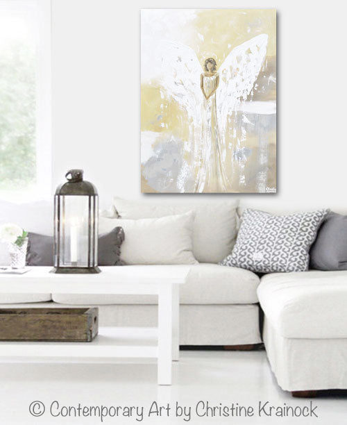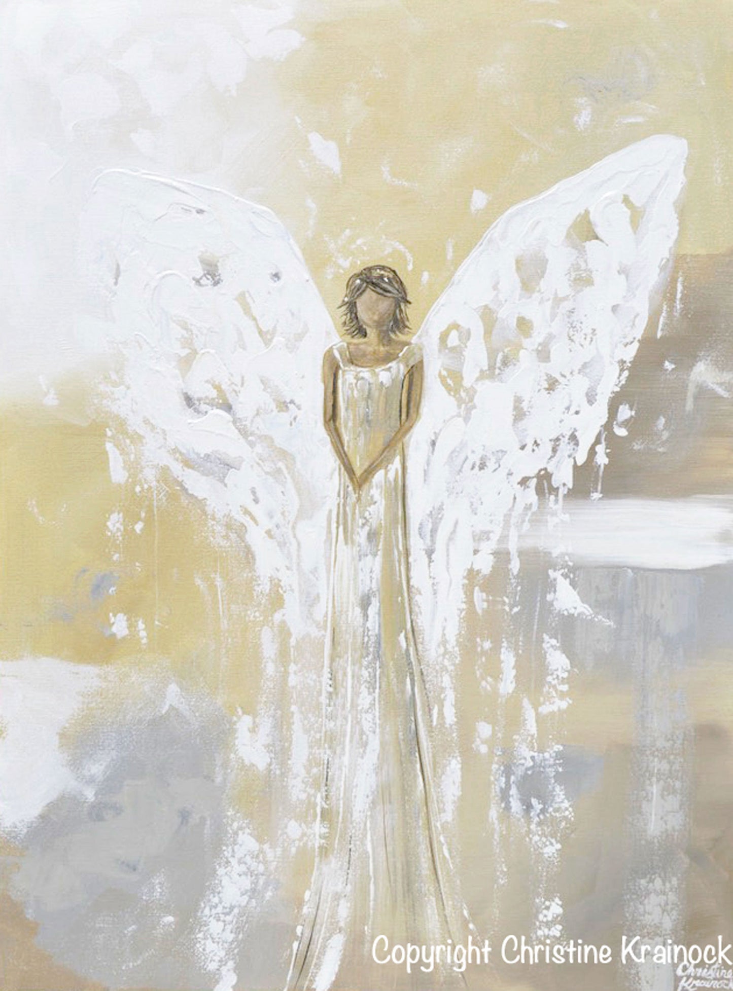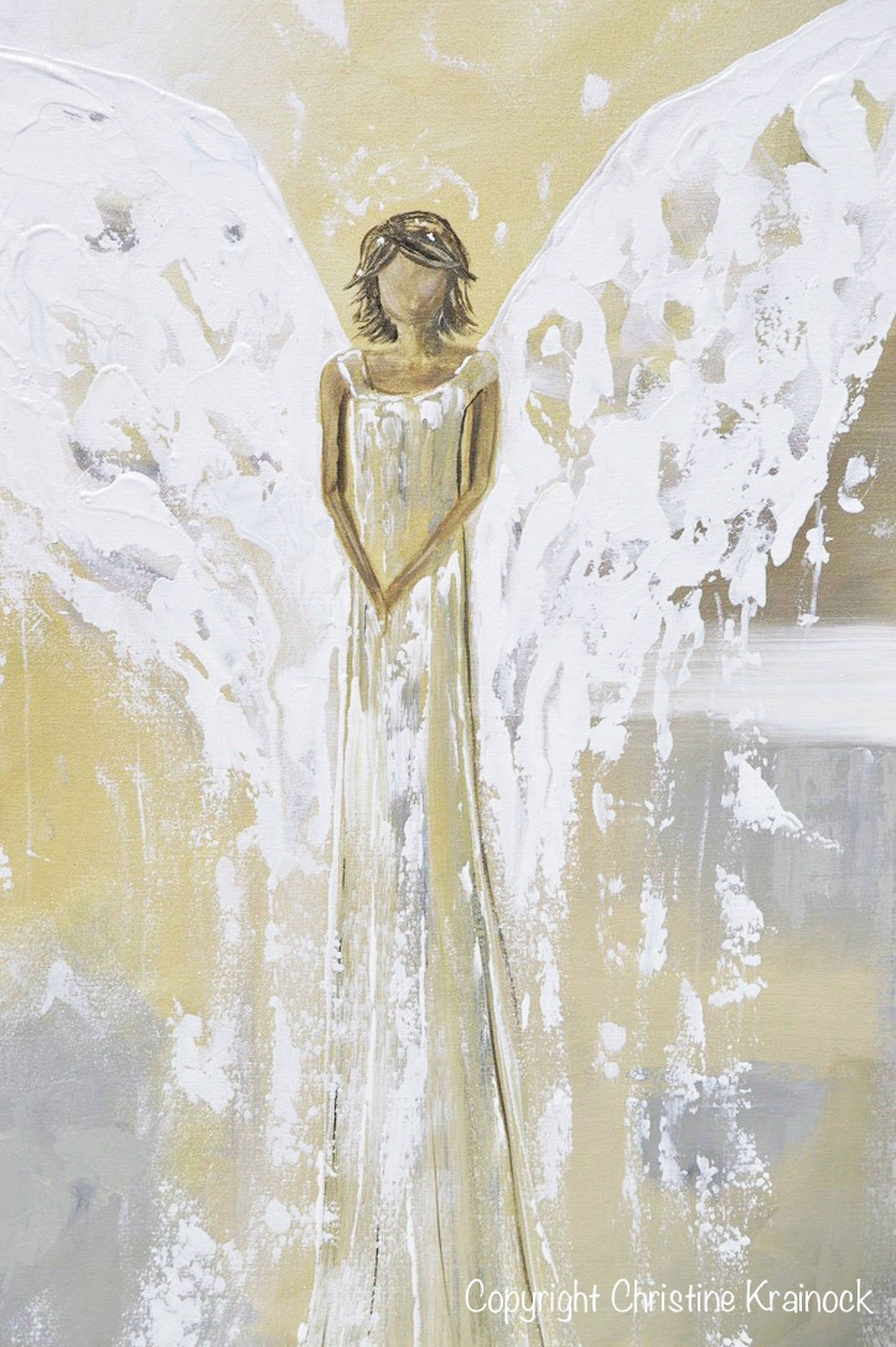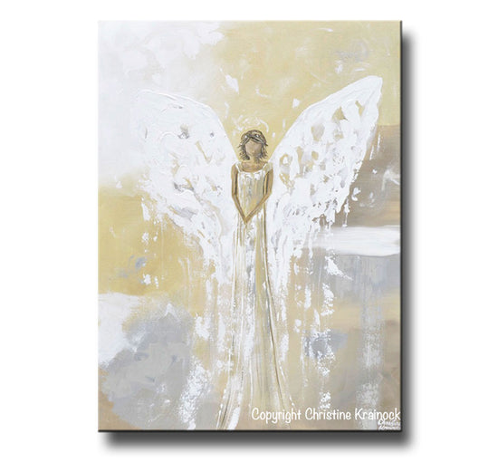 ORIGINAL Abstract Angel Painting Gold Angel White Yellow Grey Fine Art Wall Art 30x40"