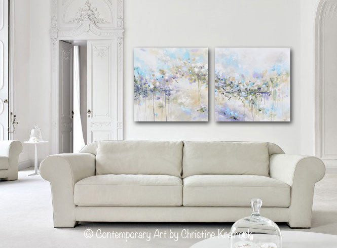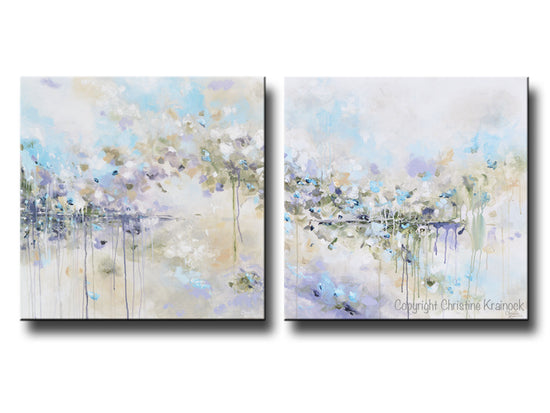 ORIGINAL Art Abstract Painting Blue White Grey Lavender Coastal Modern Diptych Wall Art Decor 30x30"